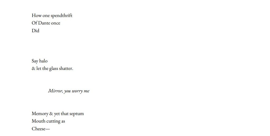 lust. Cruelty kneading me. “Motion is equal to emotion,” wrote Roethke weighing two hundred & twenty- ve pounds of gut vitality. How