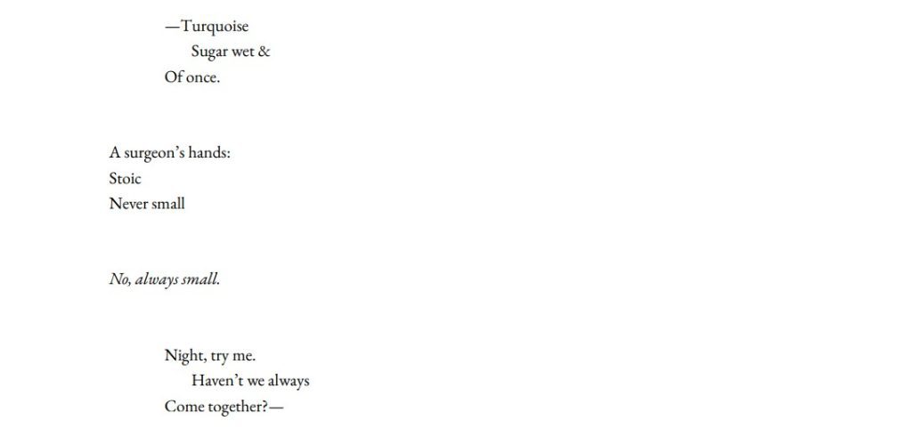 tanks re ll the hospital nearby & I sni the petrichor like an emergency. Three dogs fuck; I touch myself. The way language can also mean