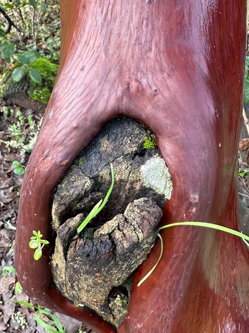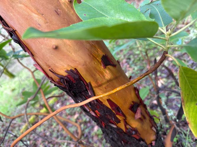 I move through the forest thinking about osmosis and hunger, the hunger of the madrone unabashedly dropping its skin to feed; it feels like an erotic act, like lovers joyously stripping naked to feast on each other’s bodies.