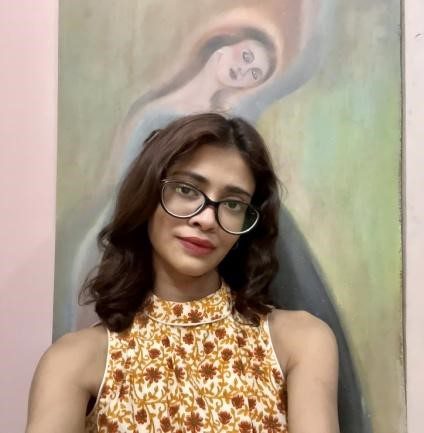 Sneha Biswas is an art practitioner and researcher, thoroughly engaged in the intersections of visual arts, critical thinking, and psychoanalysis. She has a BA in English Literature from Calcutta University (2015-2018) and an MFA in Art History from Kala Bhavana, Visva Bharati University (2020-2023). She is pursuing her second MA in English Literature from Jadavpur University (2023-ongoing). She hopes to blissfully spend the later years of her life making art and writing; perhaps she might run a magazine in time!