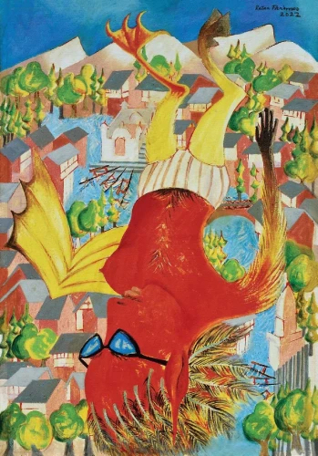 Ratan Parimoo, Self-Portrait as Icarus Transformed, 2022, Oil on