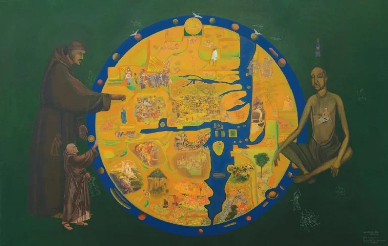 Gulammohammed Sheikh, Francis and Kabir, 2011-2022, Acrylic on Canvas, 78 x 123 inches, Courtesy of the Artist