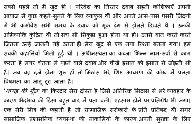 In Hashiye Ki Awazen, her second book by Bodhi Prakashan, the flawed society and its hypermasculine ways of functioning finds layered mentions. Often subtle, and perhaps slightly irritated and helpless, but never with a sense of disdain, she talks about various situations that have affected her and the people around her. In one of the essays, she is talking about the monopoly of male critics; in another, she is talking about how a Maths professor who is first blamed, and later terminated, for not coming to the college on Fridays— not because of his absence, but because his colleagues don’t themselves come in the lure of a longer weekend. By the end, one also feels the empathy with which Rawat writes, and her firm belief that society can function better if we were to look at the loopholes and find ways to work through them rather than brushing them under the carpet and thinking that that is how it ‘works.’