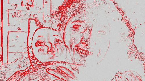 Image sequences appear as red outlines, quietly evoking the landscape of “bloodlines in search of a body.” [1] In a conceptual vein, Adajania asks: “How does an alien with no language converse with girls who have been emotionally and sexually abused? By forsaking language as she speaks to the forsaken, Mithu Sen could be pointing to its colonising powers, which bleach reality of its heterogeneity.” [2] Moreover, in this work, Sen sheds all positivist desire – she doesn’t attempt to compose an ethnographic documentary wherein outsiders may glimpse into the agonising world of her girls in order to form a cathartic narrative with a neat resolution. Instead, one encounters playful and shifting fragments of translation, haunting memories in recoil, and the flaws – or voids – built into the very mechanisms that sustain language.