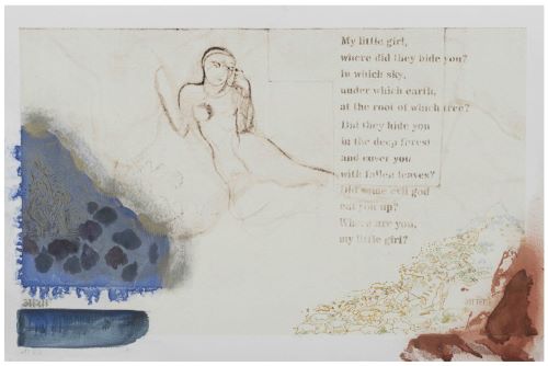 At each step of Adajania’s curation, you encounter an unsettling question: what does it mean to aestheticise violence? Or rather, how does one grasp this cryptic relation between art and politics, specifically amidst an onslaught of structural violence against women? Whereas the exhibition begins as an archive – thus with the goal to document or ‘represent’ historical violence – interestingly, some artworks move beyond the empirical (and phenomenological) to explore the emotional, the interiority of our psyche. For instance, Nilima Sheikh returns to ‘When Champa Grew Up’, her series of paintings from 1984 that traced the life of Champa, her muse, from childhood to a young adulthood, and inevitably halt with her death by burning in the hands of her in-laws. Sheikh revisits this narrative thread with darker contours; her new paintings emerge from the undead of their former selves, delicately rendered with rust and blood-red stains. Here, the fiery memorial holds not only Champa’s voice, but remains haunted by all others that succumb to her tragic fate, as Sheikh inscribes their immortal names – from Kathua to Hathras to Jammu – on her last painting, wherein a horde of agitated bystanders gather around the tenuous, lifeless, and silent body of young child.
