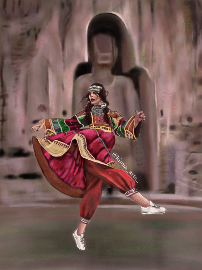 Kimia has participated in several UN-organized exhibitions in Kabul and won second place in a regional art competition organized by UN Women among multiple Asian countries. Through her art, she aims to be a voice for girls whose freedom and right to education have been taken away, raising awareness worldwide about the situation in Afghanistan. She currently lives outside Afghanistan.