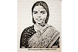 P.K. Rosy appears in history books as the first heroine of Malayalam cinema, starring in “Vigathakumaran” (The Lost Child), a 1930 silent film written, produced, and directed by J.C. Daniel who played the lead opposite to Rosy. On the day of the first screening of the film, Rosy was uninvited but still waited outside the theater with a friend, only to face immediate rejection when the upper-caste man designated to inaugurate the film refused to proceed until she was removed from the premises. The film was met with severe backlash and violence as it showed Rosy, a Dalit woman portraying a Nair (one of the upper castes in Kerala) woman on screen. What truly ignited the fury of upper caste men was a scene showing Daniel kissing a flower which fell from Rosy’s hair. In blind rage, the audience tore down the screen, their violence soon evolving into a manhunt. “She was chased away,” her cousin Madhu recounts, as Rosy fled to Thycaud, seeking sanctuary in the drama company building where she once worked. But even there, safety eluded her: “The mob came to Thycaud to set fire to the building,” forcing her to flee once more. On the third night after the film’s opening, the mob set her house ablaze. That night, Rosy escaped to Nagercoil with the help of a Nair lorry driver whom she later married, spending the remainder of her days until her death in 1987 living as the very Nair woman she had been persecuted for portraying.