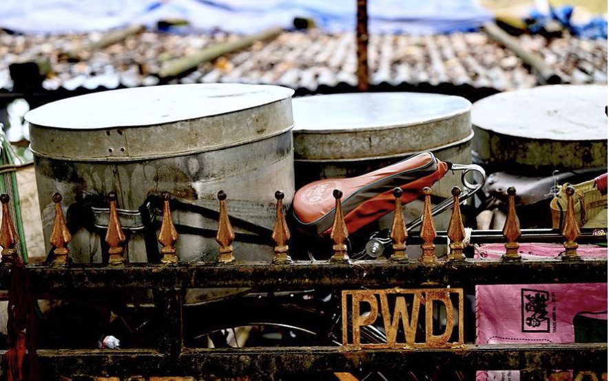 The lorries are lining up tidily on the roadside, and bicycles strapped with aluminum drums are leaning against the railing on the pedestrian walkway. Like schoolkids in uniform in time for the assembly rituals.